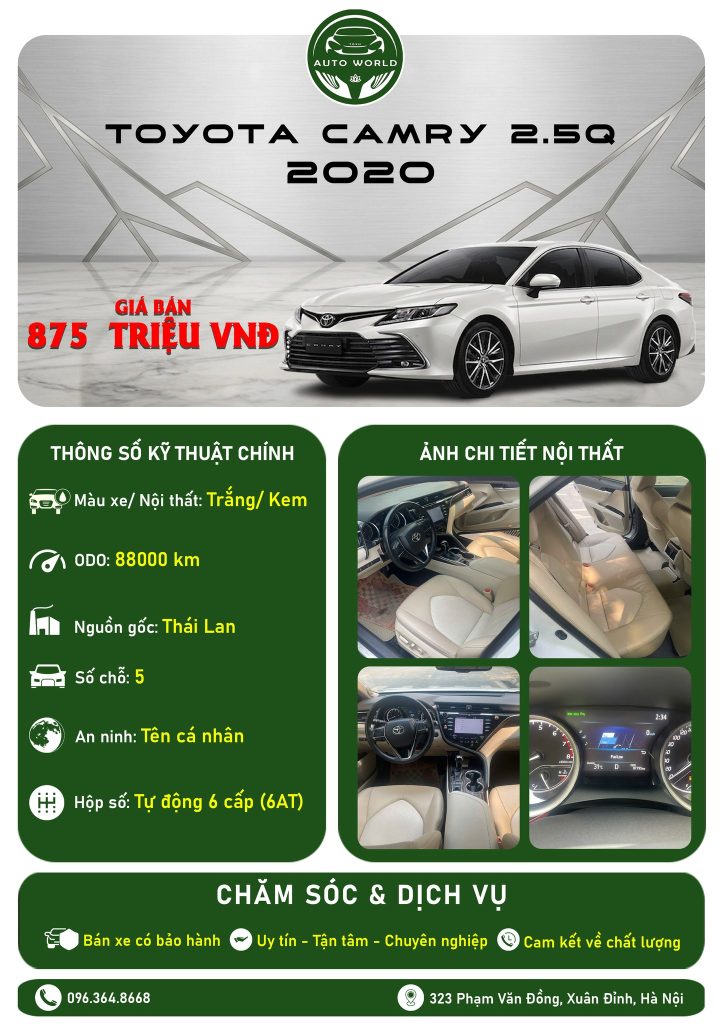 Camry 2.5Q 2020 (Trắng/Kem): ODO 8,8 vạn km – 868tr